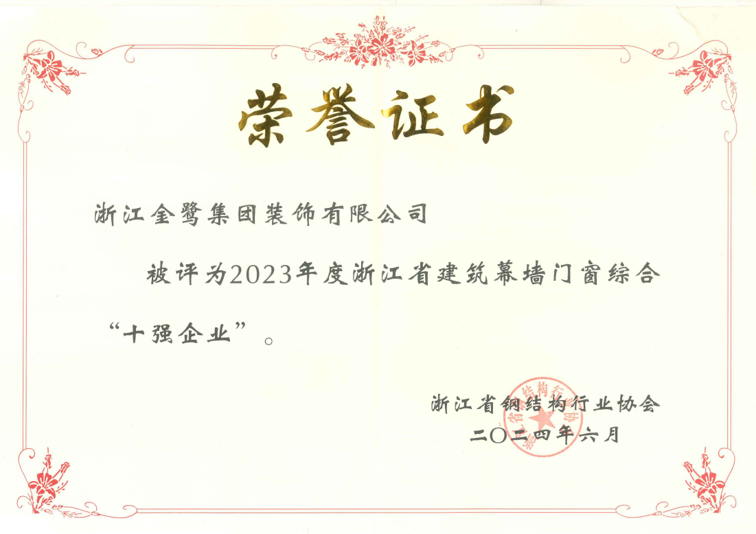 此次荣誉的获得,是对金鹭装饰在技术创新、产品质量、服务水平等方面的充分肯定。公司将珍惜这些荣誉,继续秉持“以客户为中心”的服务理念,不断提升自身的创新能力和服务水平,为客户提供更加优质、高效、环保的门窗幕墙产品和服务。同时,公司也将积极参与行业交流与合作,共同推动门窗幕墙行业的健康发展。